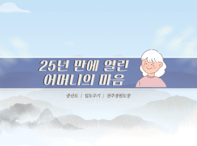 도장에 한번 와 보라고 해서 어떤 곳인지 가 보자는 생각에 처음 방문했는데 가서 보니 솔직히 성전이며 예법 등이 많이 생소했습니다. 그런데 송영대 수호사님과 대화를 하다 보니 옥황상제는 어릴 땐 많이 들어 봤고, 어린 시절을 더듬어 생각해 보니 친할머니가 깜깜한 밤에 큰 장독 위에 사발을 올려놓고 정화수를 매일 모시는 걸 보았던 기억이 났습니다. 어릴 땐 그 모습이 무섭다고만 생각했는데 가족들을 위하여 정성을 다해 기도드리셨다는 걸 알게 되었습니다. 조상님의 음덕으로 상제님을 만난다는 말씀에 어쩌면 할머니께서 저를 상제님 전으로 인도해 주셨겠다는 생각도 들었습니다.