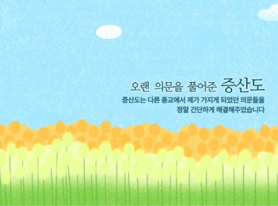 그러던 아내가 정말 어디를 믿고 다닌다고 말을 하였습니다. 일주일 중 수요일 저녁, 일요일 아침에 증산도 도장에 다닌다는 것입니다. 저는 기독교, 불교는 들어 봤어도 증산도는 처음이었습니다. 그래서 뭐 하는 곳이냐고 물었더니 아내는 상제님을 모시고 조상님을 모시는 곳이라고 하였습니다. 증산도가 생소하였던 저는 요즘 세상이 하도 뒤숭숭하니 걱정 반으로 너무 빠지지는 말고 취미 생활로만 다니라고 하였습니다.