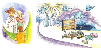 그때까지 신앙에 대한 마음이 크게 열리지 않았기에 저의 반응은 밋밋하였습니다. 그런데 왠일인지 평소와는 다르게 아내는 아주 강력하게 말을 하였습니다. “당신은 몰라도 내 딸은 개벽기에 살려야 되니까. 당신이 민씨 종자이니 민씨 조상님 천도식은 해야 되겠다!”라고 밀어붙이는 겁니다. 그래서 가만히 생각해 보니 평소에 아버님께 죄송한 마음이 컸는데 천도식을 올려 드리며 그 불효한 마음을 용서받고 싶었습니다. 마침내 천도식을 할 마음을 먹고 수호사님과 상의하며 하나씩 준비를 해 나갔습니다.