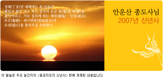 안운산 종도사님 정해년 신년사