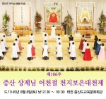 증산도 본부 태을궁에서 오는 8월 8일(음력 6월 24일)제 106주 증산 상제님 어천절(御天節) 천지보은대천제가 봉행됩니다. 상제님의 어천절은 道紀39년(서기 1909년) 음력 6월 24일, 인간으로 오신...