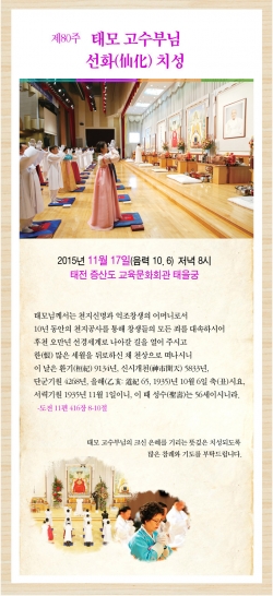 국내외 도장의 모든 성도님들과 상제님 도문(道門)에 입문·입도를 앞두고 있는 예비도생 성도님들을하반기 천지보은대천제에 초대합니다. 도기145(2015)년 올 한해를 되돌아보고 다가오는 병신(丙申)...
