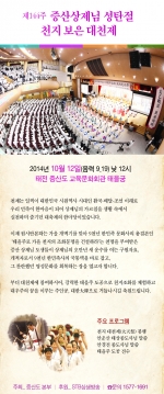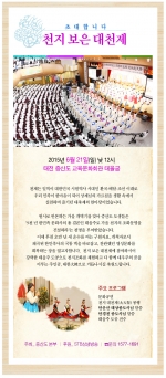 ※ 21일 열릴 예정이던 ‘천지보은대천제’는 메르스 확산으로 인해 취소되었습니다. 전국의 증산도 각 도장에서 자체적으로 국난극복 기원 특별기도회를 열 계획입니다. 참석할 예정이었던 모든 분들...