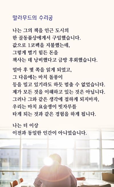 용행자가 옆자리를 권했다. 진표는 그의 친절이 거부할 수 없는 어떤 귄위처럼 느껴졌다. 또한 그런 용행자가 진표는 싫지 않았다.