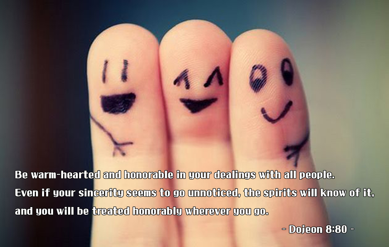 Be warm-hearted and honorable in your dealings with all people. Even if your sincerity seems to go unnoticed, the spirits will know of it, and you will be treated honorably wherever you go.