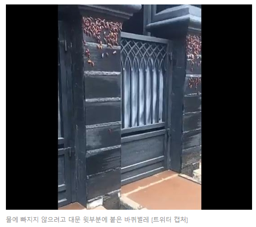또 다른 트위터에는 침수된 주택 대문 윗부분에 바퀴벌레 수십 마리가 물에 빠지지 않으려고 붙어있는 동영상이 게시됐다.