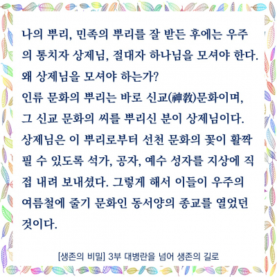 나 같은 사람은 평생을 교육에 몸담고 살았다. 교육은 평생에 걸친 문제이면서 인간을 깨닫고 느끼면서 자연스럽게 체험하는 것이라고 믿는다. ‘사랑이 있는 교육이 세상을 바꾼다’라는 내 주장과 신념도 그렇다.