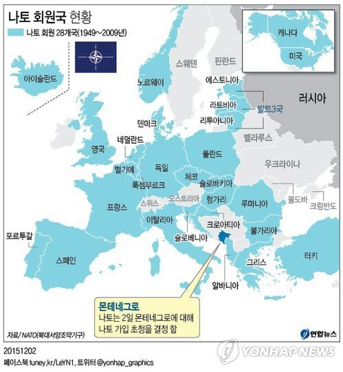 러시아 VS 나토 시사정보◈나토, 동유럽 몬테네그로 받아들이기로..러시아 반발 2015.12.02 http://media.daum.net/foreign/clusterview?newsId=20151202232844669&clusterId=1750510 북대서양조약기구(나...