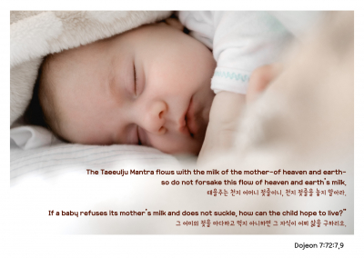 The Taeeulju Mantra: The Mark of Sustenance for Gaining New Life태을주는 새 생명을 구하는 녹표(祿票)One day during his work of renewal,하루는 공사를 행하실 때Sangjenim wrote out the Taeeulju Mant...